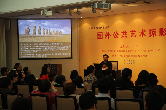 中国美术馆124 20131026日下午,北京大学艺术学院副院长丁宁教授做客中国美术馆七层学术报告厅 “艺术讲堂”,为听众带来了一场题为“国外公共艺术掠影”的精彩讲座。听众中既有报名前来的众多对公共艺术感兴趣的社会人士,也有来自清华大学、中央美术学院、中国人民大学等高校的大学生,主讲人谈吐生动风趣,现场互动十分热烈。