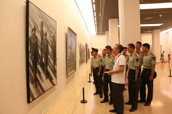 作为北京市爱国主义教育基地,中国美术馆的公共教育服务一直关注社会各阶层受众。此次以“中国梦·强军梦——军事题材美术作品展 ”为契机,在中国美术馆举办的迎“八·一”主题教育活动,秉承“贴近基层、走进官兵”的指导思想,让官兵们在艺术的巡礼中,在作品的艺术性、时代性、思想性的感染中,领略艺术的魅力,凝聚爱国爱家、强军兴军、追梦圆梦的精神力量。活动受到了官兵们的热烈欢迎并取得了良好的收效。