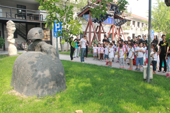 820,小营员们参加了一场特别的雕塑体验活动。老师首先带小营员漫步在迷人的美术馆院内欣赏馆藏雕塑作品。通过观看和触摸,培养小营员们对雕塑的直观感受,使他们了解雕塑块面构成的结构特点和不同美感。来到活动教室后,老师以播放幻灯片的方式带领小营员们欣赏更多的经典雕塑作品,并启发他们用雕塑语言表达创作主题。在创作雕塑环节,小营员们利用橡皮泥、绒铁丝、硬纸板等材料创作出的《拥抱》、《爱之天鹅》等作品造型丰富、创意十足。
