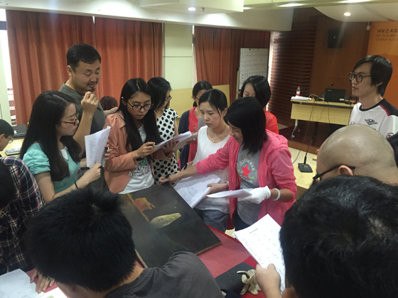 该项目从7月4日开始,来自全国各美术馆典藏、保管部门的三十余位业务骨干齐聚中国美术馆,学员们首先参加了为期三天的“国家美术藏品保存修复国际研讨会”,通过国际、国内保存修复领域的19位专家的精彩演讲,了解到国际重要美术博物馆、保存修复研究机构的最新学术动向和先进技术,对该领域在国内的发展情况也有了全面的认识。在这一高水准的学术会议氛围的带动下,学员们以高涨的热情投入到随后展开的专业培训项目中,先后进行了为期各两周的“油画保存修复实技示范”和“卷轴书画保存修复实技示范”。在旅美著名油画修复专家司徒勇和旅日著名中国画修复专家陆宗润两位先生的生动讲授和亲自示范中,学员们既对两类艺术品的物质材料、结构层次,修复的历史、原则、理念等有了清晰的认识;还对各自的修复操作流程有了基本的把握,尤其是通过示范观摩和上手实践,对修复这项有着极高难度和动手能力要求的技艺有了真切的体验。在实技示范的同时,主办方中国美术馆还邀请国内重要的文博、科研机构和高等学院的专家,从不同角度补充保存修复的相关专业知识,如文博机构目前在文物保护与修复方面形成了怎样的体系,有哪些经验可以借鉴参照;现代科技如何与传统修复技艺相结合,国际通行的保存修复理念是什么,在具体修复实践中应该如何根据修复对象进行灵活而准确地把握等等。这些课题的研究,对于刚刚起步的美术馆界的藏品保护工作显得有为需要。一方面由于意识和理念尚未形成共识,另一方面由于作品多是创作不久且仍处在不断收藏中,预防性保护和日常维护工作必须成为美术馆工作的新常态。中国美术馆保存修复中心在这一领域走在全国前列,通过引入国际经验,将已在国际重要美术博物馆通行而国内尚未得到注重的藏品保存修复经验向学员们进行了介绍,并结合案例对环境的综合监测、“促使藏品恶化的十大因素”等重要指标进行了详细讲解,提出美术馆应以预防性保护为优先考虑,且需全馆工作人员人人参与的工作理念。从而不断推动全国美术馆界的藏品保护工作走上积极、全面而健康的发展方向。在课程的最后一周,组织学员们赴天津、上海两地参观美术馆、博物馆,赴安徽泾县实地考察宣纸制作工艺,将所学、所知与直观的田野调查相结合,大家反响强烈、收获颇丰。