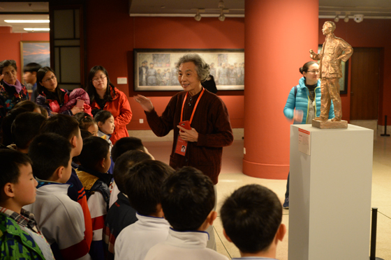 雕塑《艰苦岁月》表现的革命乐观主义精神打动了孩子们
