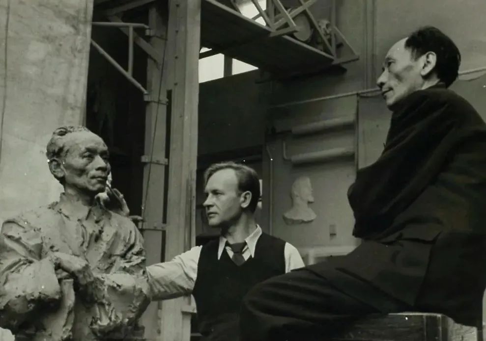 1958年 莫斯科谢尔盖•谢里哈诺夫为到访的中国艺术家蒋兆和塑像原照片现收藏于白俄罗斯国家文学艺术档案馆基金会