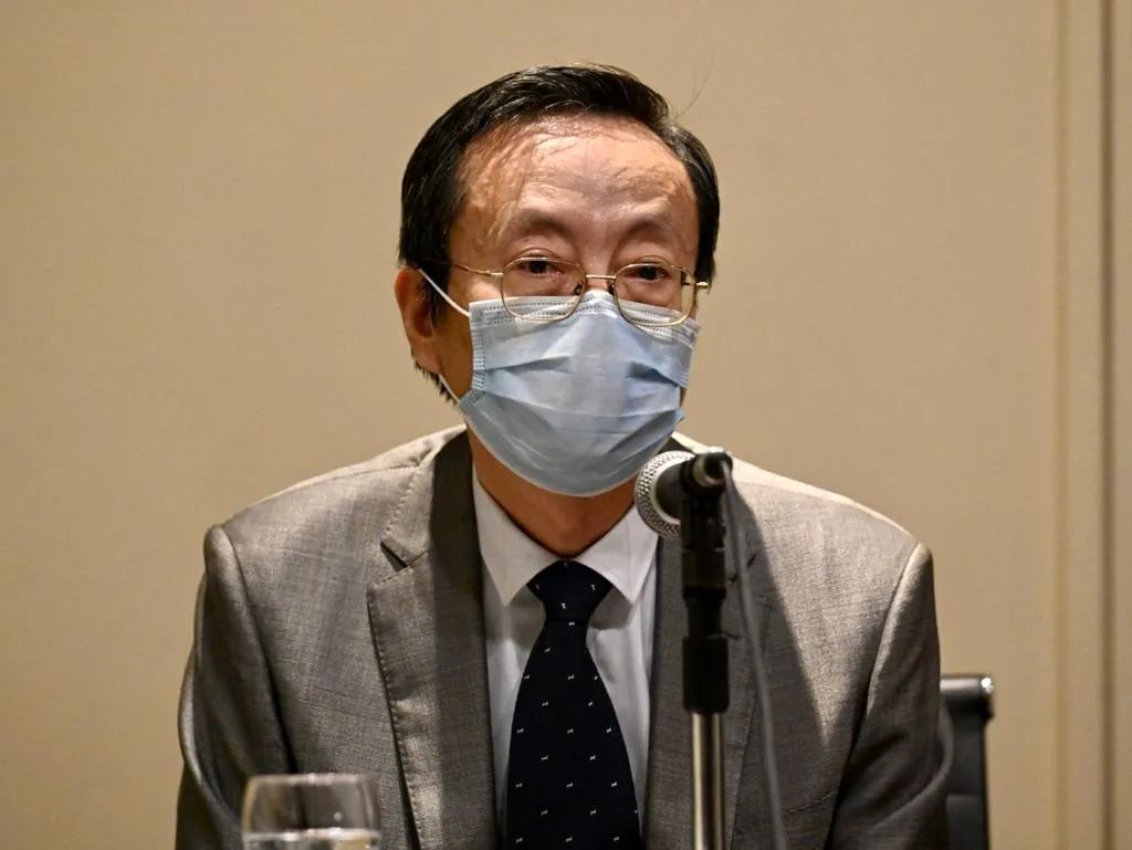 从左至右:乌拉圭视觉艺术博物馆馆长恩里克·阿盖尔、乌拉圭前哥伦布土著艺术博物馆馆长法昆多·德·阿尔梅达、乌拉圭教育和文化部部长巴勃罗·达·西尔韦拉、中国驻乌拉圭大使王刚、乌拉圭教育和文化部国家文化局局长玛丽安娜·温斯坦