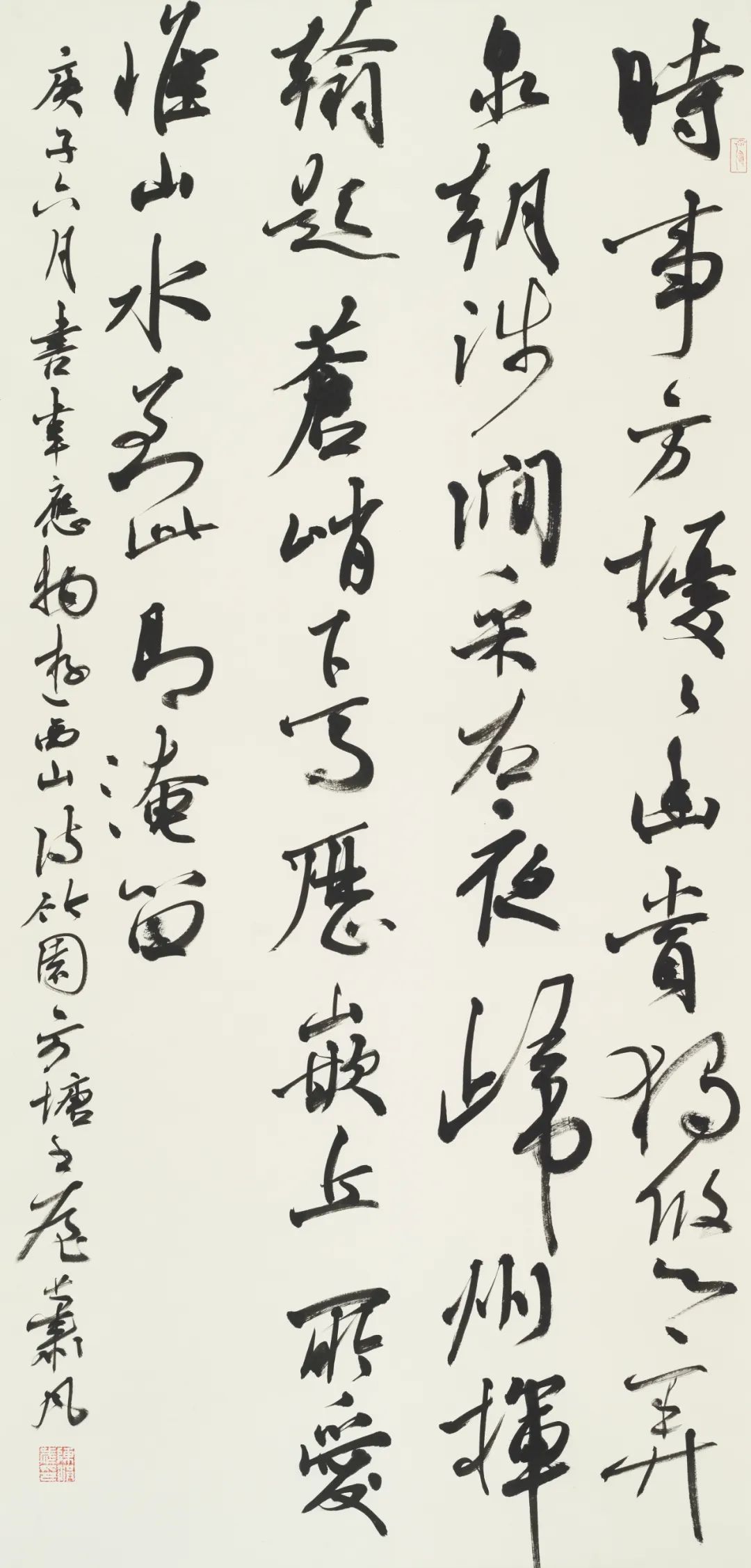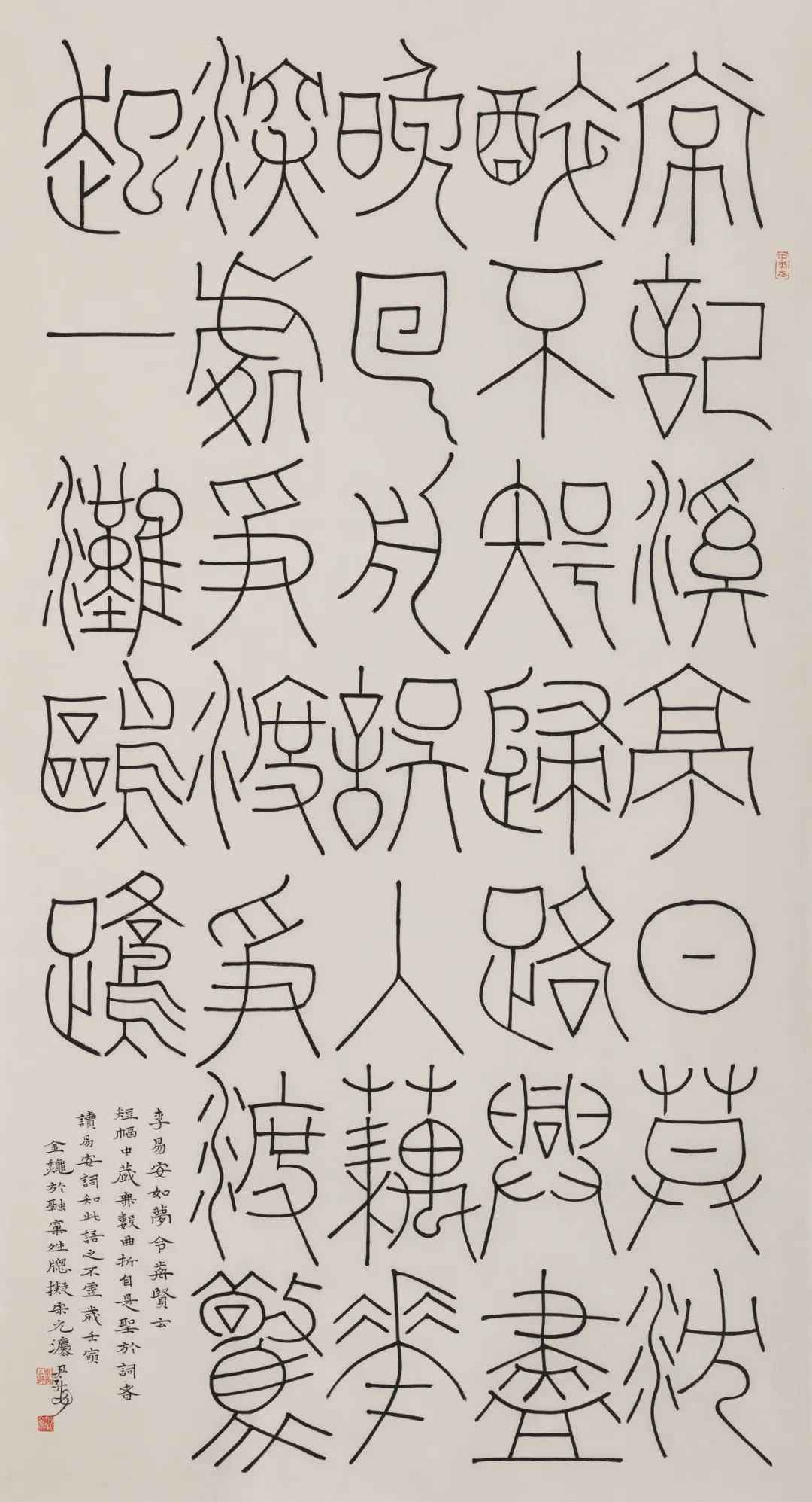 时代风格,更多地体现为艺术随时序世情更迭而变化。清人梁巘《评书帖》中有“晋尚韵、唐尚法、宋尚意、元明尚态”,此间的“韵”“法”“意”“态”,均以一个字而概括时代风格。当然,时代风格非空中楼阁,须以继承传统为基础。宗白华说:“历史上向前一步的发展,往往是伴着向后一步的探本穷源。”进言之,新艺术风格的诞生,应有“积学以储宝”的过程。师古皆属“积学”的重要途径,艺术家在对传统充分了解、学习、继承、掌握的基础上,敏锐地捕捉所处时代的社会文化环境特征,师古师心,因情而变,顺势而作,凌逾古今——恰如千年前的苏轼,“本之平原以树其骨,酌之少师以发其姿,参之北海以峻其势”,博采众家之长又独出机杼,成为尚意时代书风的典范。今人高二适亦有“出入于千数百家而自成一体”。所谓“一代之风,无有不肖乎一代之人与文者”,可见书、文乃一律也。由是,我们不妨借《文心雕龙·通变》的文字来概括书法之时代风格的酝酿与形成:“文(书)律运周,日新其业。变则可久,通则不乏。趋时必果,乘机无怯。望今制奇,参古定法。”新时代,书法获得了新的角色。其植根于中国特色社会主义文化沃土,以无比自信的姿态吸吮传统的源头活水,“中国风格”“中国气派”成为创作理念,“中华美学精神”成为创作导引,“筑就中华民族伟大复兴时代文艺高峰”成为追求目标。新时代的浩浩书风中,国家、民族、个人的前程、使命、责任、审美、希冀,皆蕴于其间……新年将至,我约请曾来德先生策展,邀请当今书家以时代新作玉成了中国美术馆学术邀请系列展。相信通过展览,观众能体会到新时代书法家的壮志与活力,领略到新时代书风中蕴含的文韵与春意。