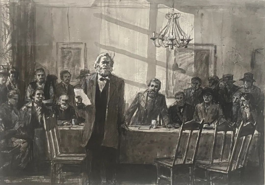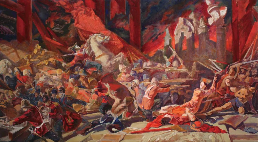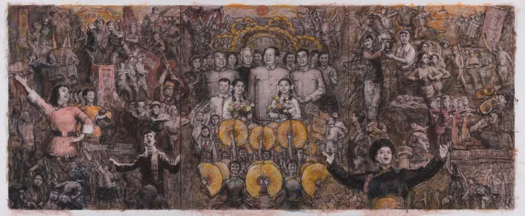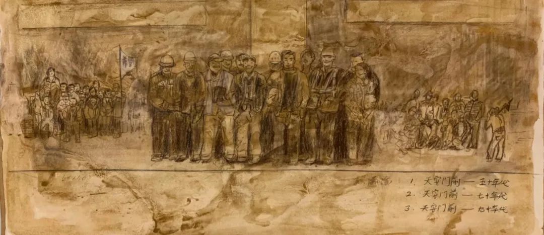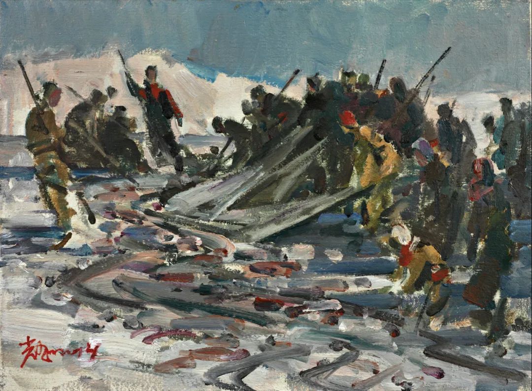 通过立意、构思、酝酿形成腹稿,继而画出来,即所谓的草图。这便是一件创作的初始呈现,也许不成熟,但这凝聚了作者最原始的创作冲动,往往是最为真实的内心流露,也是艺术形式最早的雏形。经常听作者介绍一件创作时说:“数易其稿。”这“易”的过程就是去粗取精、去伪存真的修炼;是创作者创造思维的心路历程;是创作者将客观形态转化为形式的过程;是艺术语言的锤炼!这里容纳了无数的信息,肯定、否定、再肯定、再否定,矛盾的对立与统一,从简单到复杂,再回到单纯,进而纯粹……所以说草图的价值不仅在于为正稿做基础工作,还有研究价值、文献价值、史料价值,尤其是对创作心理的研究有着十分重要的意义。故草图虽为草图,但也有其独特的审美价值。在图像学研究的层面上,我们可以用透视比例的原理来审视艺术家在表现空间时视角与方法,也可以从若干根辅助的“草线”中了解艺术家在创作时将各种事物关联时的逻辑思维的能力。常常,我们会在看各种草图时带着好奇,因为,从这之中可以探究完成稿的秘密,更可以更为深刻地理解完成稿的深刻性。本次展览邀请了当代一些优秀的艺术家提供了他们部分作品的草图,有不少作品已是家喻户晓的名作,但草图却是第一次披露出来。我们可以从一张作品的多幅草图中看到、感悟到艺术家们在创作时没有负担的自由造型和自由表现。这种难得的放松正是艺术创作时进入无我状态的“自在”,在这“自在”状态下的表现,往往令人十分感动,因为它的最重要之处在于“真”。没有装腔作势、没有矫揉造作,在笔触与色彩的表现中充满自由自在、洋溢着生命的感悟。有些作品是国家重大题材的美术作品草图,在草图与成稿的比较中,我们不难发现草图常常予人们以咫尺千里之感。其原因乃在于作者在短时间内完成了构想,一挥而就的出发点是“意”。不为形所囿,不为形式所束缚,更不为既成的表现方式所困扰。从这意义上讲,草图是观摩成品的一面镜子。这“镜子”里可看到更多的晃影,充满想象与神奇。本次展览所邀请的作者都是当代卓有成就的艺术家。在防疫的特殊情况下,他们积极支持中国美术馆的工作,精选出自己代表性草图参加展览,使我们看到了“大作”背后的故事。我要特别感谢执行策展人张峻明先生,热情、诚恳帮助组织了许多艺术家,并在学术理念、展览思路等方面贡献智慧。100×150cm 1972——1973年 中国美术馆藏