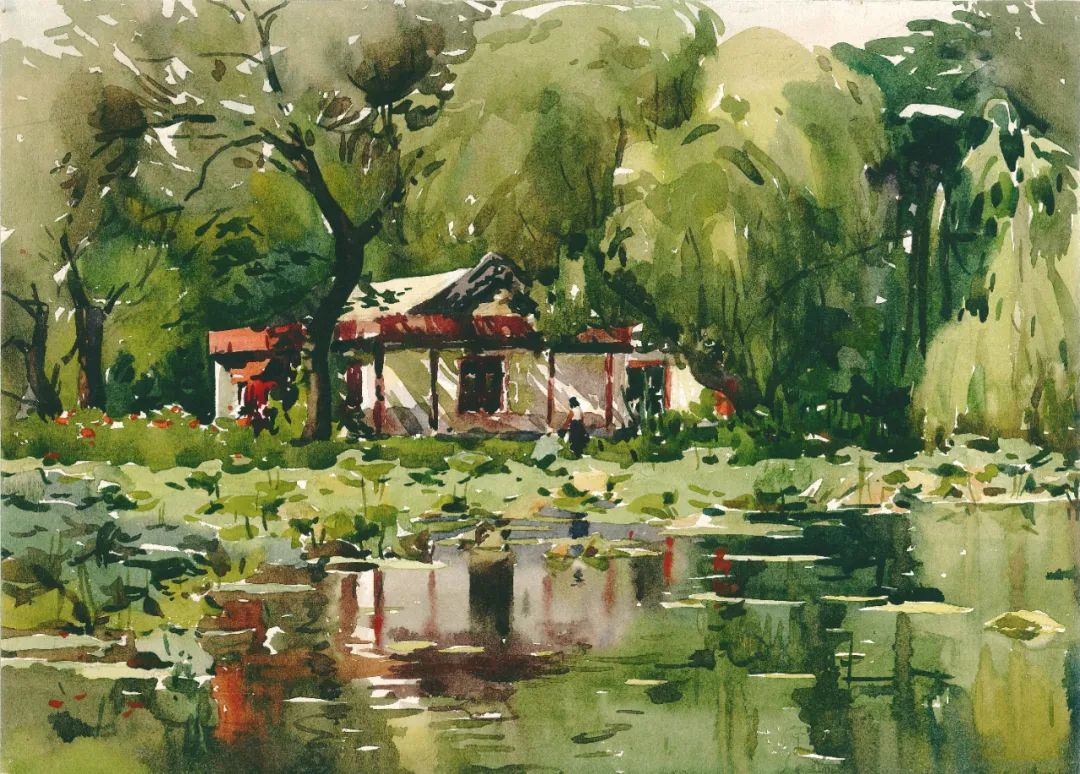 未名湖畔 徐坚 水彩