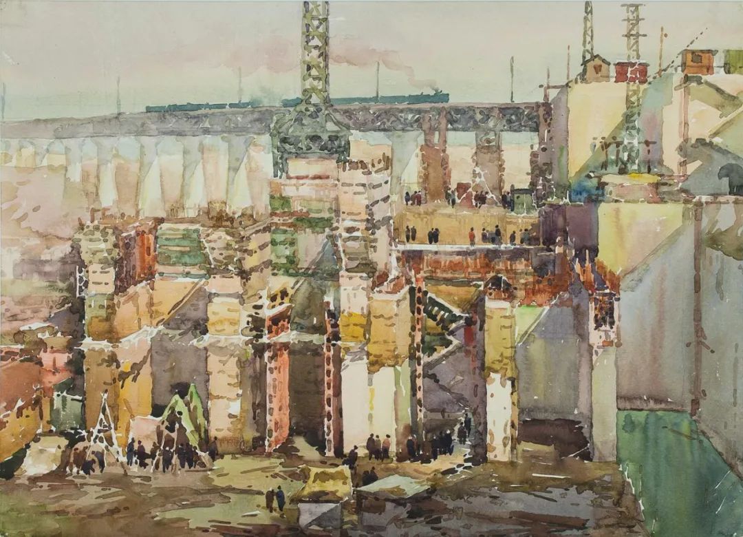 建设中的葛洲坝 徐坚 水彩