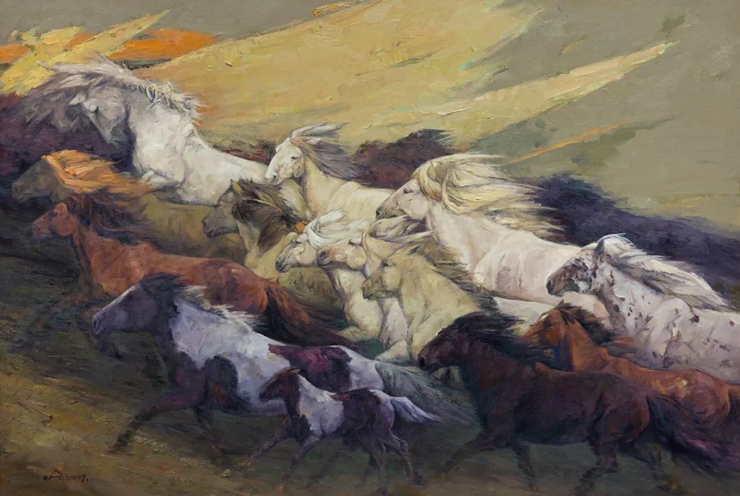2014年,习近平总书记在内蒙古考察时指出,“蒙古马虽然没有国外名马那样的高大个头,但生命力强、耐力强、体魄健壮。我们干事创业就要像蒙古马那样,有一种吃苦耐劳、一往无前的精神。”2019年、2020年、2023年,习近平总书记在不同场合多次谈到“蒙古马精神”,这既是对内蒙古人民的亲切关怀和殷殷嘱托,也是对他们的深情激励和热切期望。为深入贯彻落实习近平总书记对内蒙古的重要指示精神,推进“北疆文化”建设,大力弘扬蒙古马精神,推动内蒙古优秀文艺作品“走出去”,更好地树立内蒙古形象,本次展览精选130余件反映蒙古马精神的优秀美术、摄影作品,以艺术的形式展现内蒙古风采。