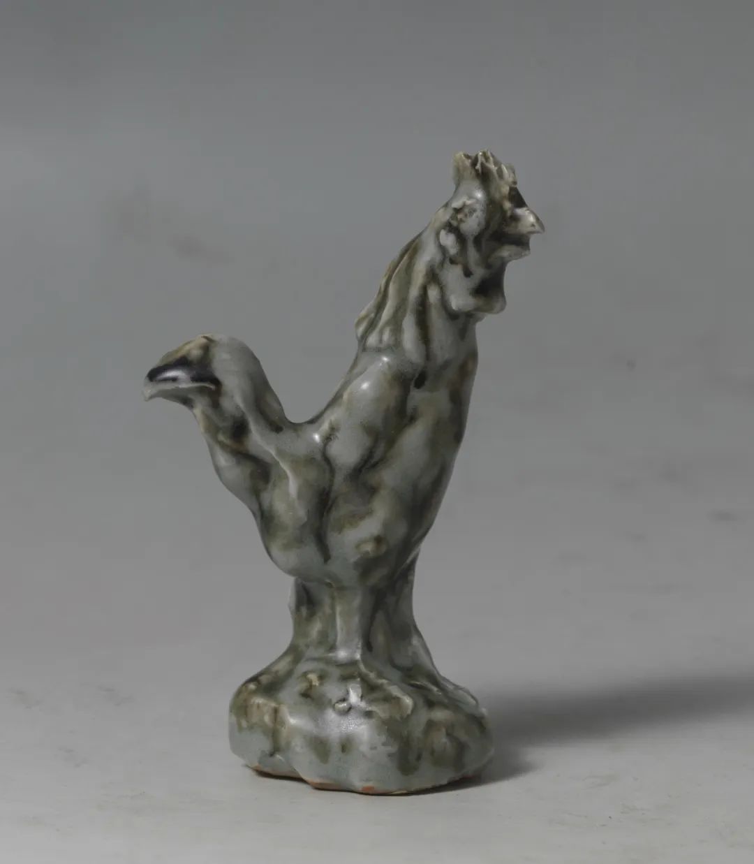 周轻鼎擅长动物雕塑。《公鸡》雕塑以其生动的形态和细腻的表现手法,成功地塑造了一只威武雄壮、栩栩如生的公鸡形象。公鸡的头冠高耸,羽毛丰满,姿态挺拔,仿佛在宣告着它的权威和地位。周轻鼎通过精湛的雕塑技艺,将公鸡的每一个细节都刻画得淋漓尽致,使得整件作品充满了生命力和动感。