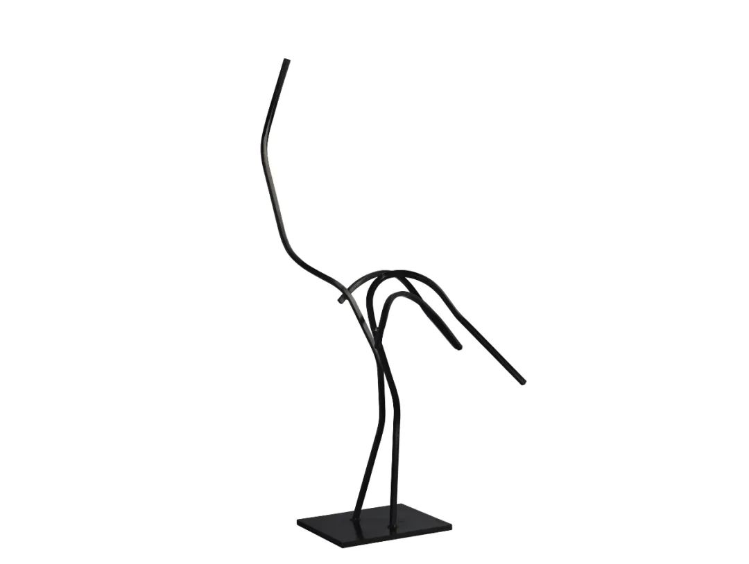 《线条鹤》以其极简而富有力度的线条,勾勒出了鹤的优雅身姿。这种处理方式去除了鹤的具体形象,而专注于其骨骼结构和动态特征,使得作品具有一种超越具象的抽象美。铁条根据造型的需要扭曲、弯折,直线与弧线互相辅助,平面和曲面彼此依托,形成了一种独特的韵律和动感。这种对线条的灵活运用,不仅展示了熊秉明对材料的深刻理解和掌控能力,也体现了其深厚的艺术修养和独特的审美追求。他巧妙地将书法的线条运用到雕塑中,使得作品具有一种独特的书写性和韵律感。《线条鹤》体现了熊秉明对东西方艺术的深刻理解和融合。