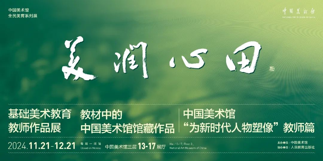 为深入贯彻习近平文化思想,切实落实《中共中央办公厅 国务院办公厅关于全面加强和改进新时代学校美育工作的意见》的精神,展现深耕于基础教育教学一线的美术教育工作者的时代风采,并为广大基础美术教育工作者搭建展示与交流的平台,由中国美术馆主办、人民教育出版社协办,共同推出中国美术馆全民美育系列展“美润心田——基础美术教育教师作品展”,展出作品包括基础美术教育教师征集作品、教材中的中国美术馆馆藏作品、中国美术馆“为新时代人物塑像”教师篇。教师创作美的作品、教材中美的作品、最美教师塑像,三者汇聚在中国美术馆这座美的殿堂,用基础教育之美,滋润大众心田。
