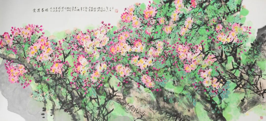花香,源于文脉里流淌的墨香,源于时代中摇曳的灵韵,源于文人意趣与市井烟火的交融,也源于传统根系与当代视野的对话。深处,则潜藏着一位画家以笔为犁耕耘的文化沃土,涌动着不断创新的生命力。