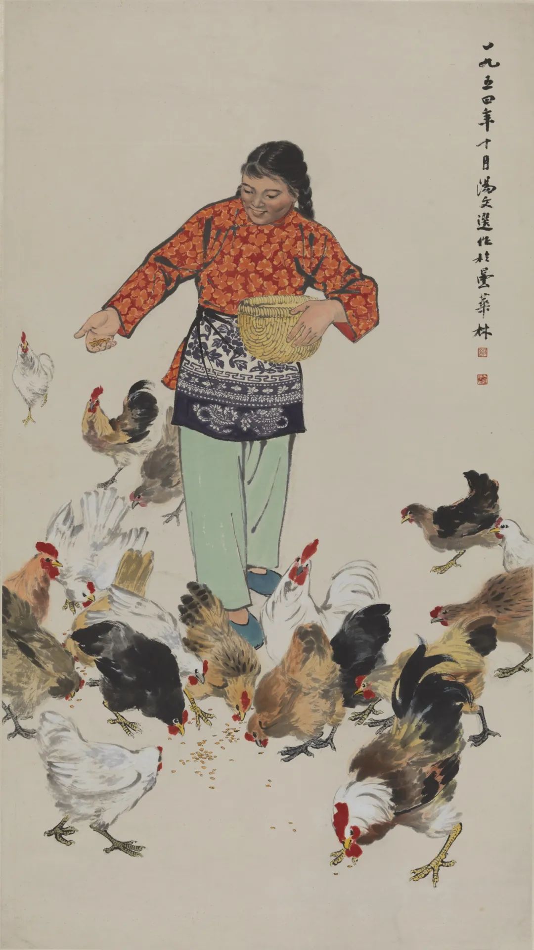 喂鸡  汤文选  中国画