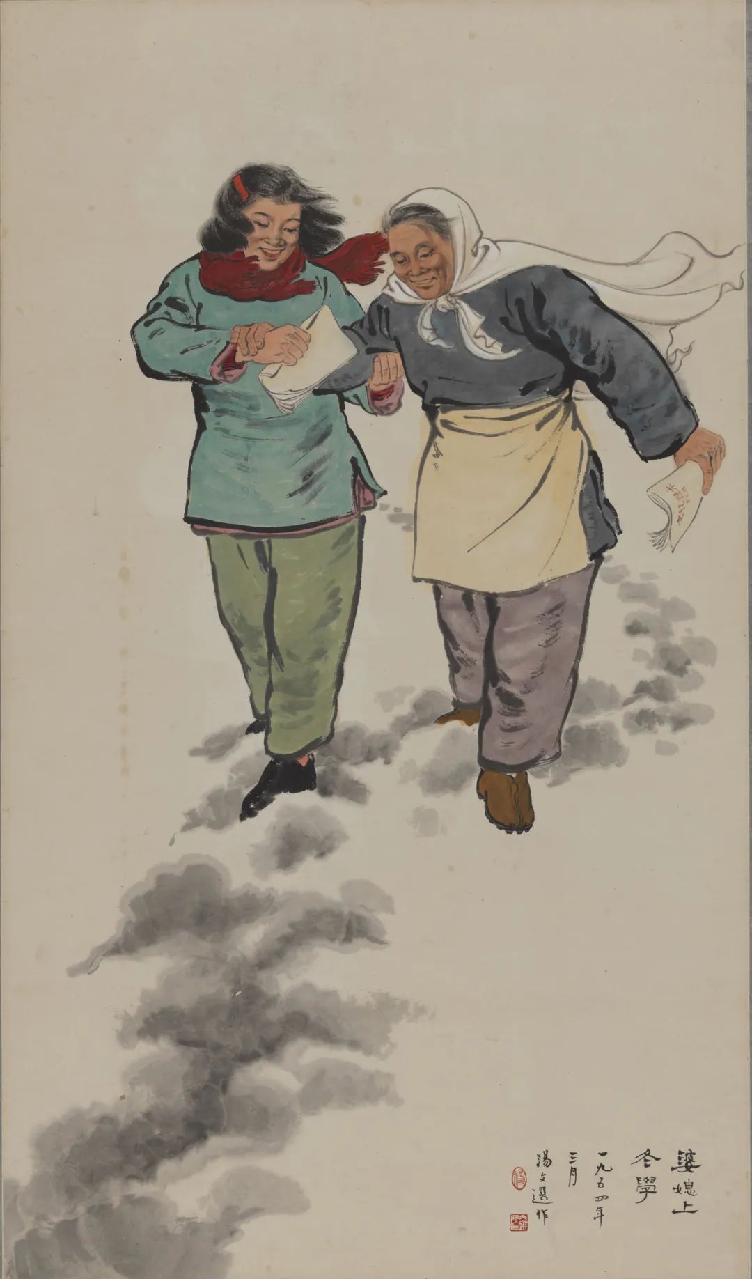婆媳上冬学  汤文选  中国画